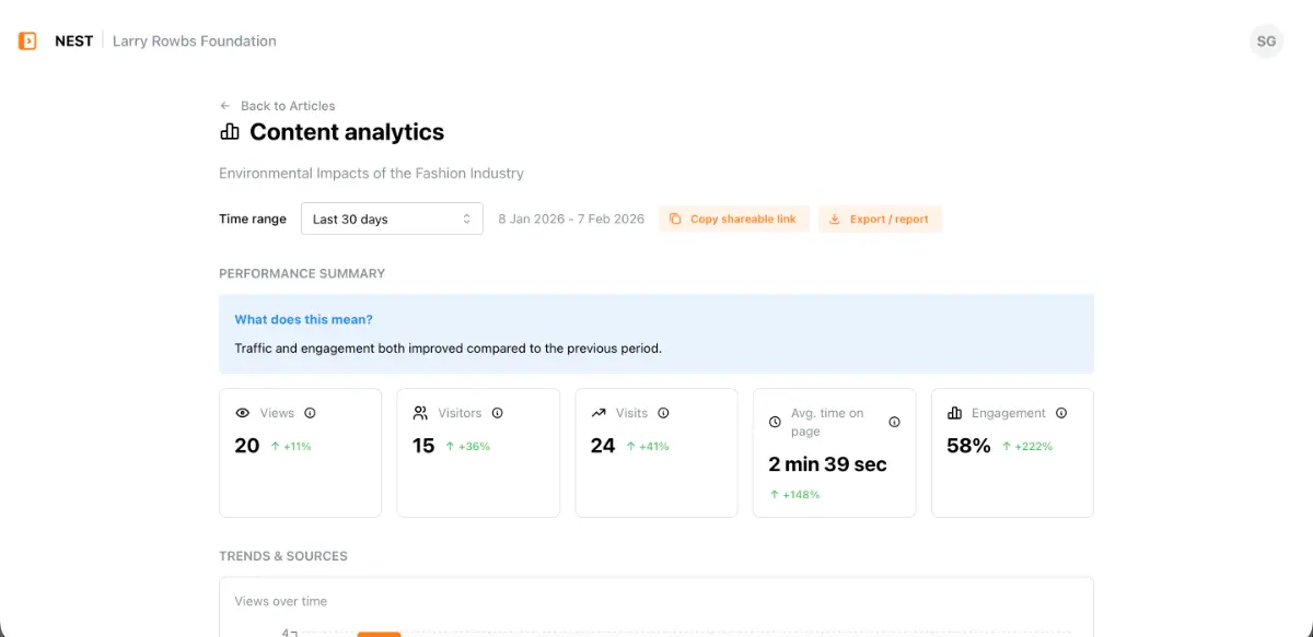 By bringing analytics directly into content, NEST helps teams focus on what truly matters. What people read. What they care about. And where effort should go next.