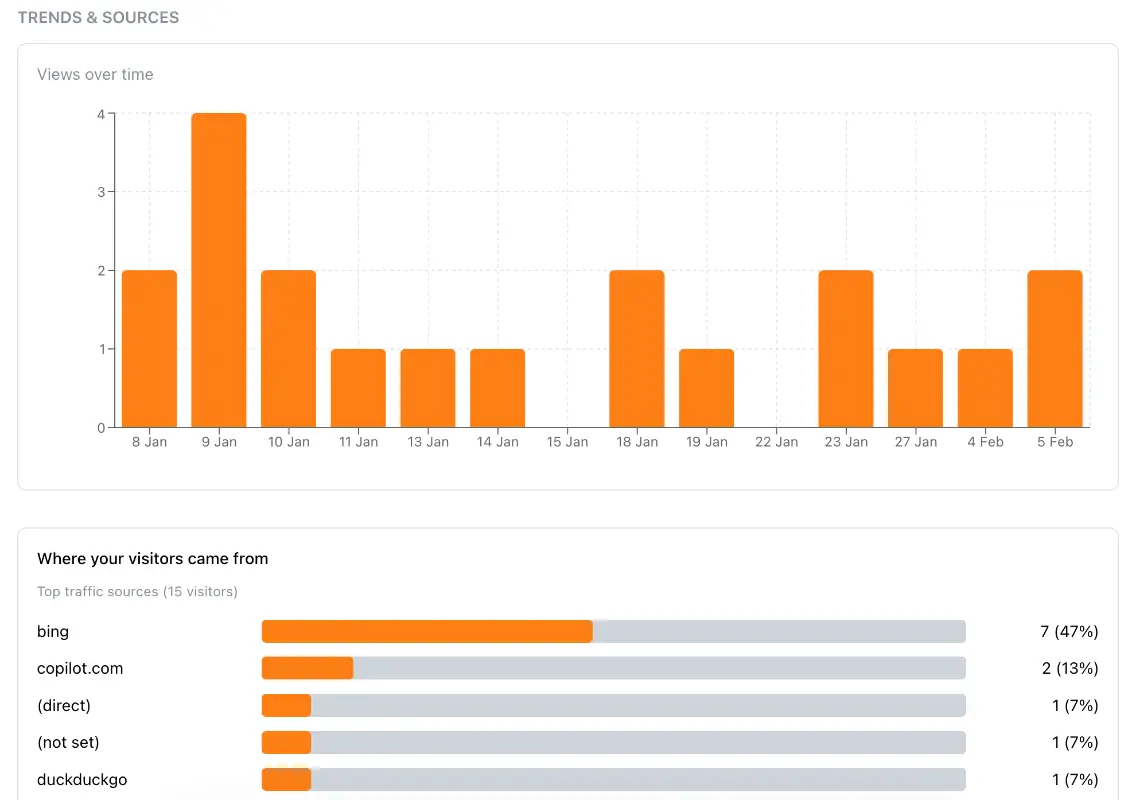 The daily views chart adds another layer. You can see when interest spikes, when it fades, and when it returns. This is especially useful after sharing content, sending newsletters, or promoting campaigns. You can finally see the effect of your actions.