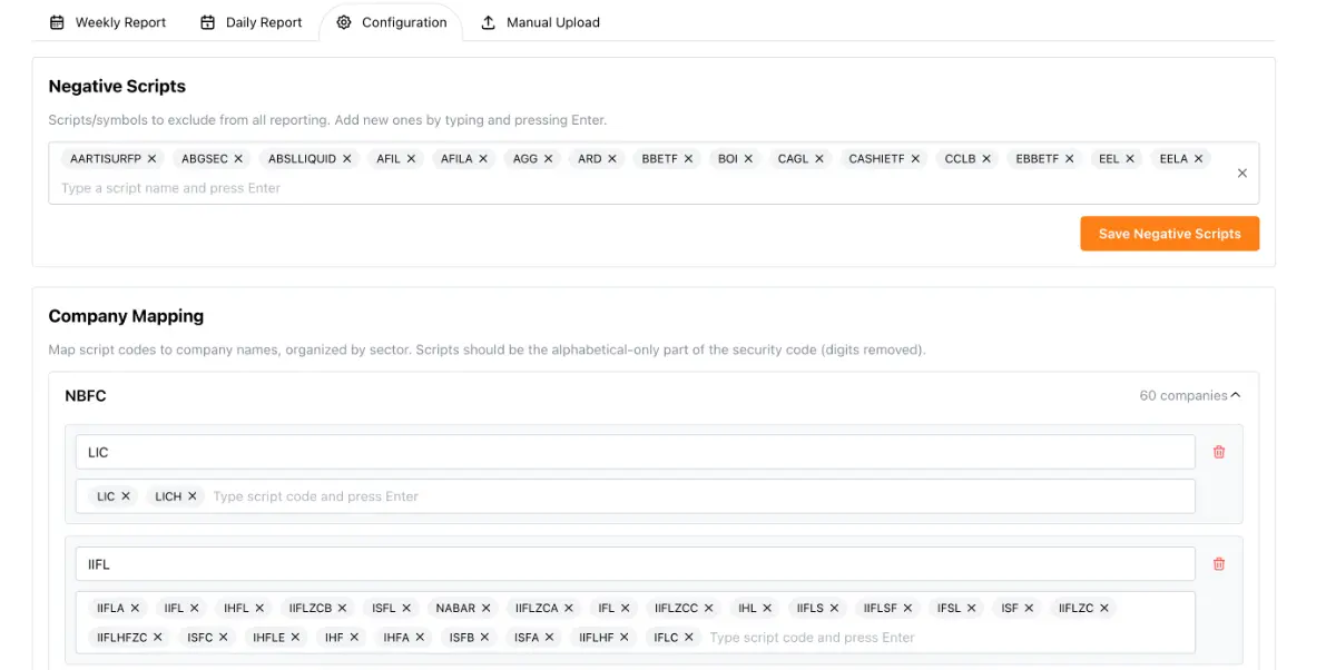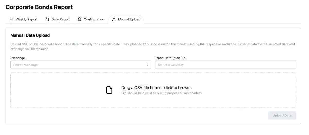 If NSE or BSE scraping fails, they can download the CSV report themselves from the exchange website. Then upload it to the dashboard.
