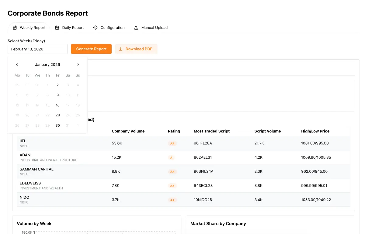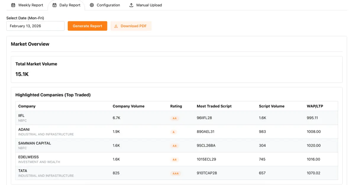 They trade corporate bonds. Every day, after the market closed, they would download data from NSE and BSE. Then the real work started. Cleaning the file. Removing securities they do not care about. Grouping different bond codes under the same company. Making charts. Writing notes. Saving and sharing the report.