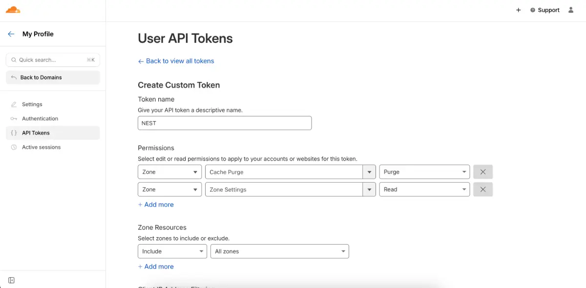 The API Token allows NEST to perform limited actions such as cache purging and reading domain level configurations.